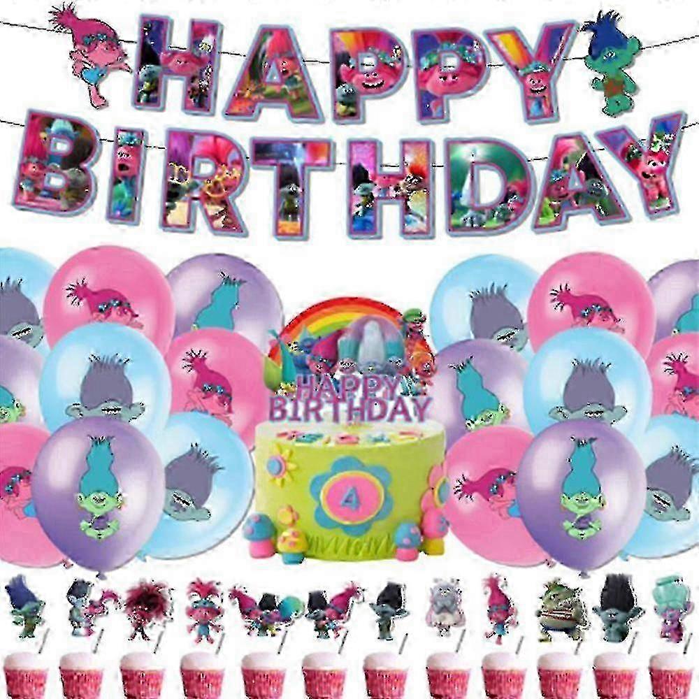Kids Cartoon Trolls Birthday Party Decoration Set Include Happy Birthday Banner, Balloon, Cake/cupcake Topper, Trolls Party Favor Supplies