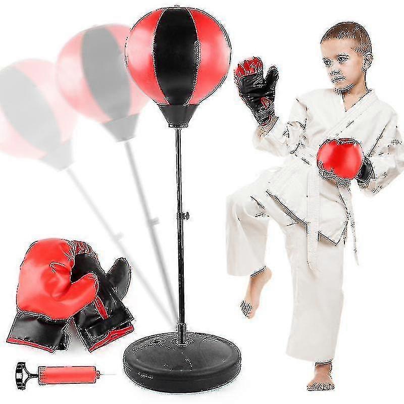 Kids Punching Bag Freestanding Adjustable Boxing Bag Set With Gloves Inflatable Ball
