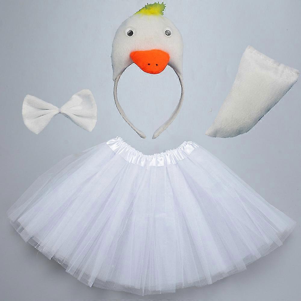 Children Kids Yellow White Animal Duck Animals Headband Tail Skirt Party Props Birthday Halloween Costume Cosplay