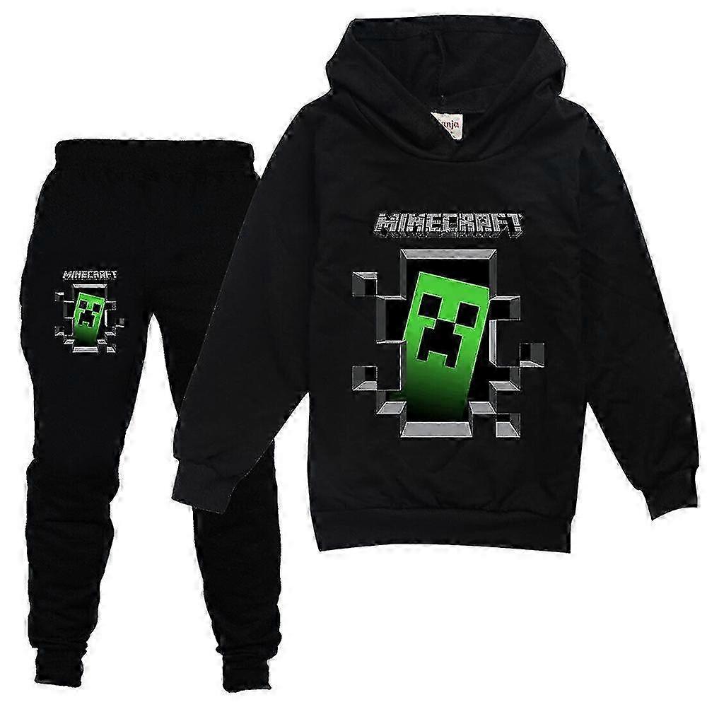 Kids Boys Girls Minecraft Print Long Sleeve Tracksuit Set Sweatshirt Hoodie Tops Trousers Casual Outfit