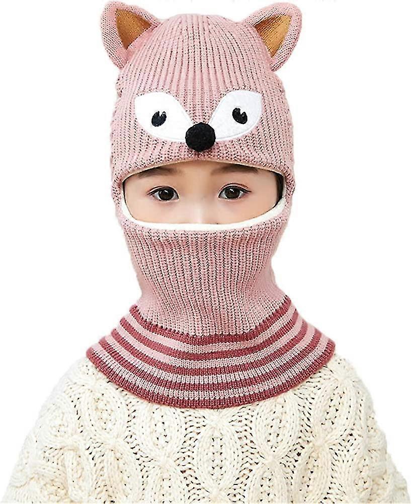 Kids Windproof Balaclava With Pompoms Knitted Long Earflap Hat With Neckerchief Acsergery Gift
