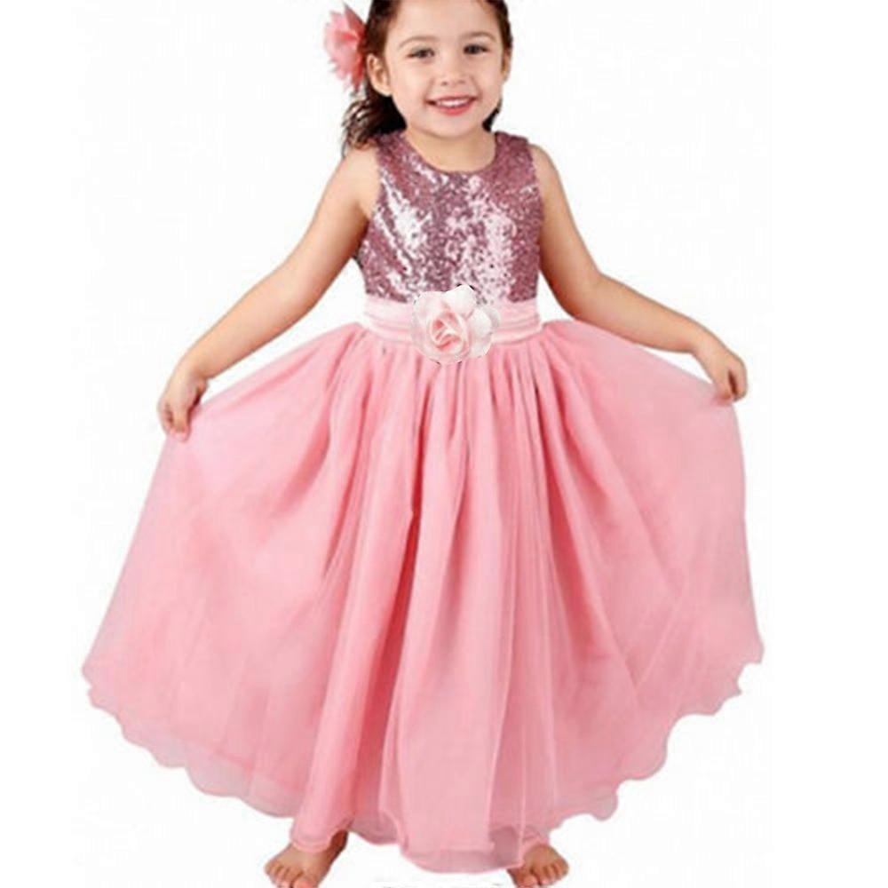 Kids Girls Princess Sequin Dress Party Wedding Formal Ball Prom Gown Bridesmaid Tutu Dresses Material: Tulle, Polyester Package included: 1 x Girls Dress Note: 1. Due to different computers display colors differently, the color of the actual item may vary slightly from the below images, thanks for your understanding. 2. Please allow 2-3 cm measuring deviation due to manual measurement.