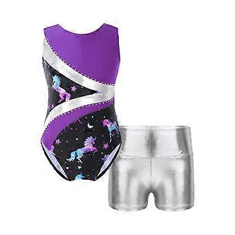 أطفال بنات بلا أكمام مطبوعة الباليه الجمباز ثياب مع السراويل القصيرة مجموعات ملابس الرقص للرقص مسابقة أداء بذلة