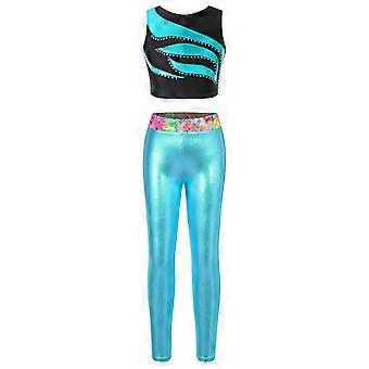 أطفال بنات جاز الرقص زي بلا أكمام المحاصيل الأعلى مع طماق معدنية للباليه الجمباز ملابس الأطفال مجموعات ملابس الرقص
