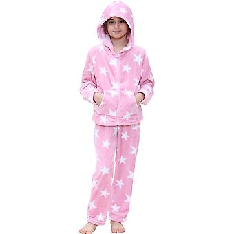 أطفال بنات نجوم طباعة بسحاب بيجاما اضافية لينة مقنع الفانيلا الصوف PJS مجموعة