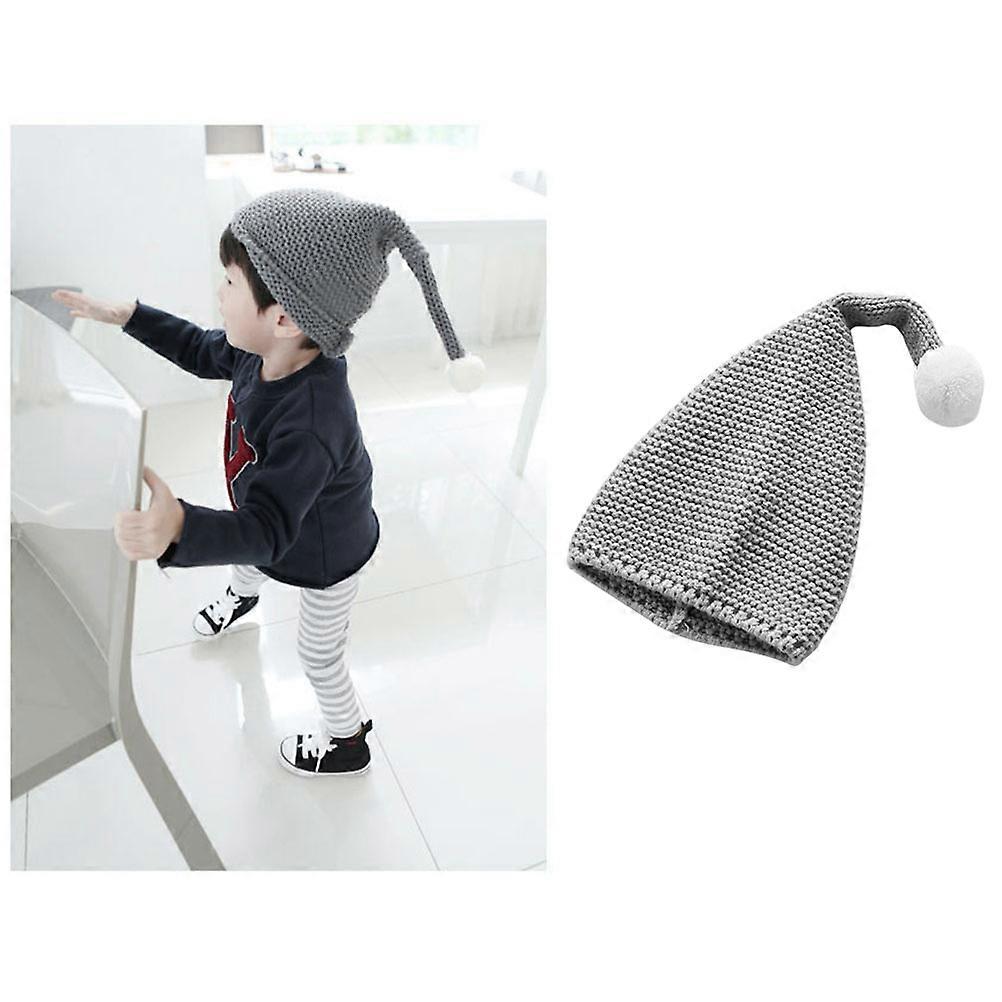 Kids Santa Hat Knit Beanie Christmas Warm Fluffy Pompom Grey For Playing 1Pcs