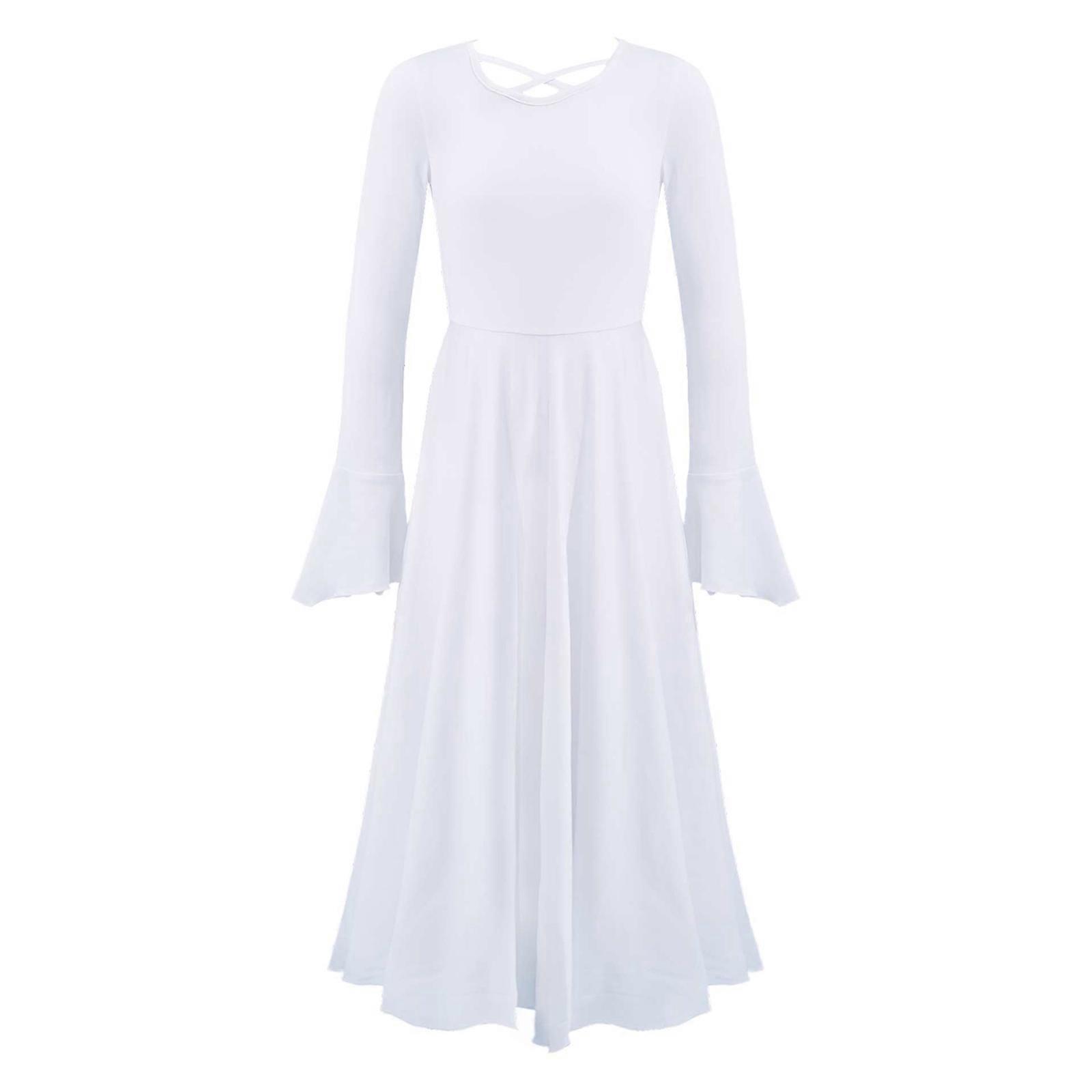 Kids Girl Ballet Tutu Dress Children Long Sleeve Crisscross Ruffle Cuffs Lyrical Dance Costume Long Dress Contemporary Dancewear