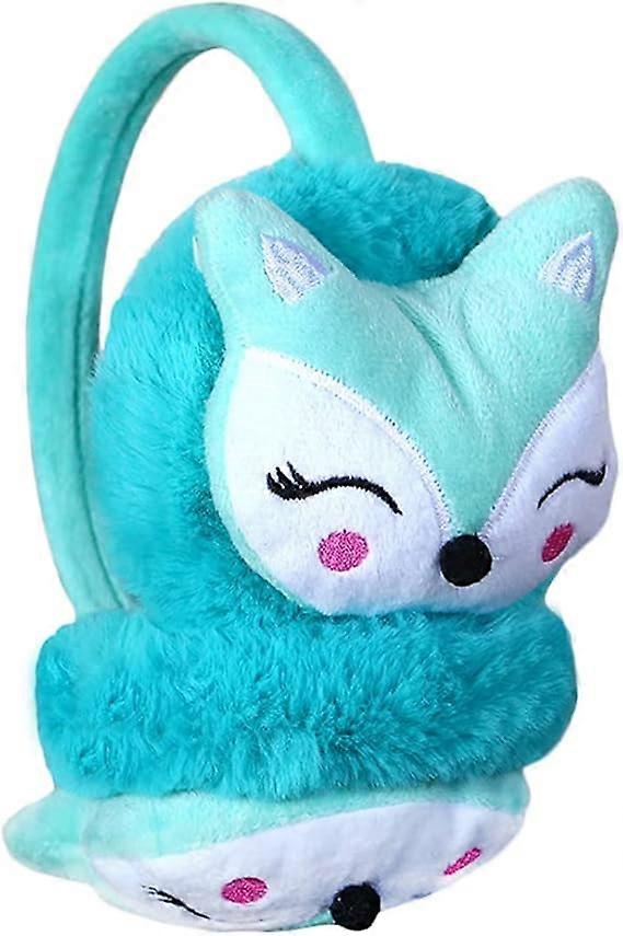 Kids Furry Winter Earmuffs ,Cute Fox Plush Warmer Windproof Outdoor Earmuffs ,Cartoon Soft & Warm Ear Muffs ,for Toddlers,Lake Blue