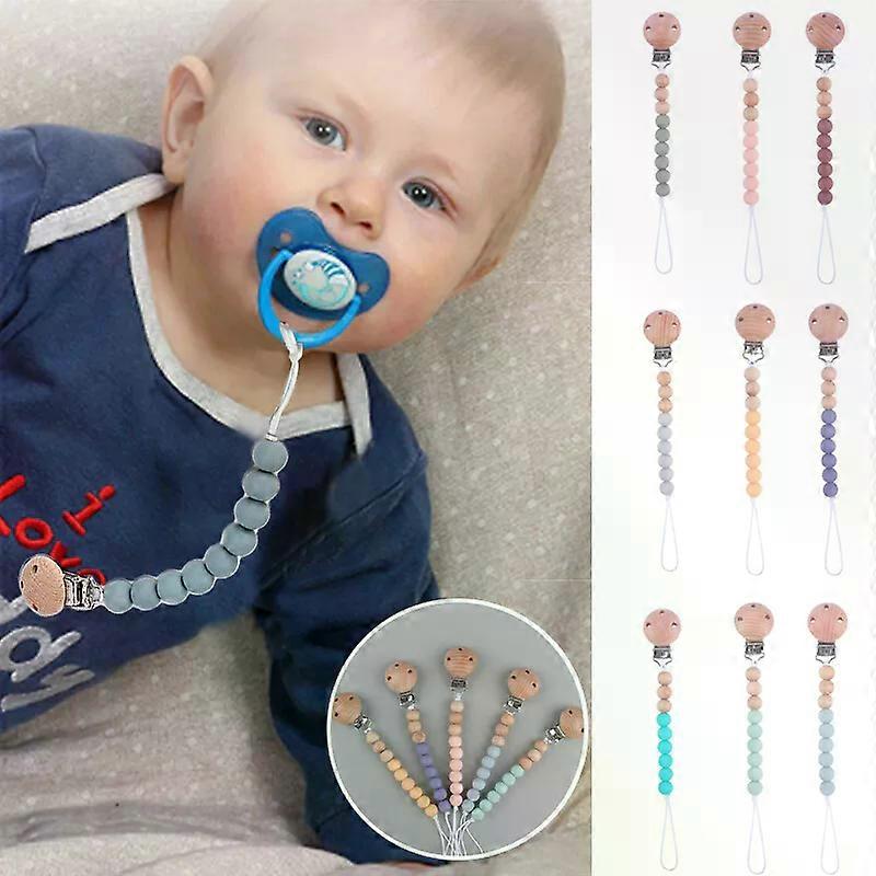 Baby Dummy Clips, 9 Pcs Wooden Silicone Beads Pacifier Chain Strap Holder for Baby Shower Gifts