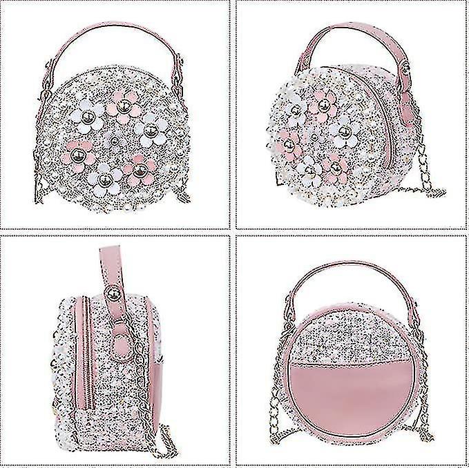 Kids Mini Crossbody Bag Pearl Flower Handbags Cute Round Bag For Little Girl Lovely Shoulder Bag For
