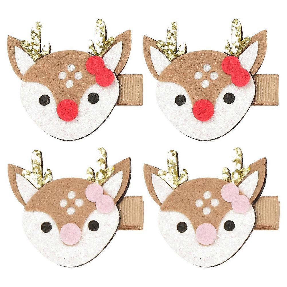 Kids Hair Clips Christmas Design Headdress 4Pcs Hair Decoration for Girls White Khaki