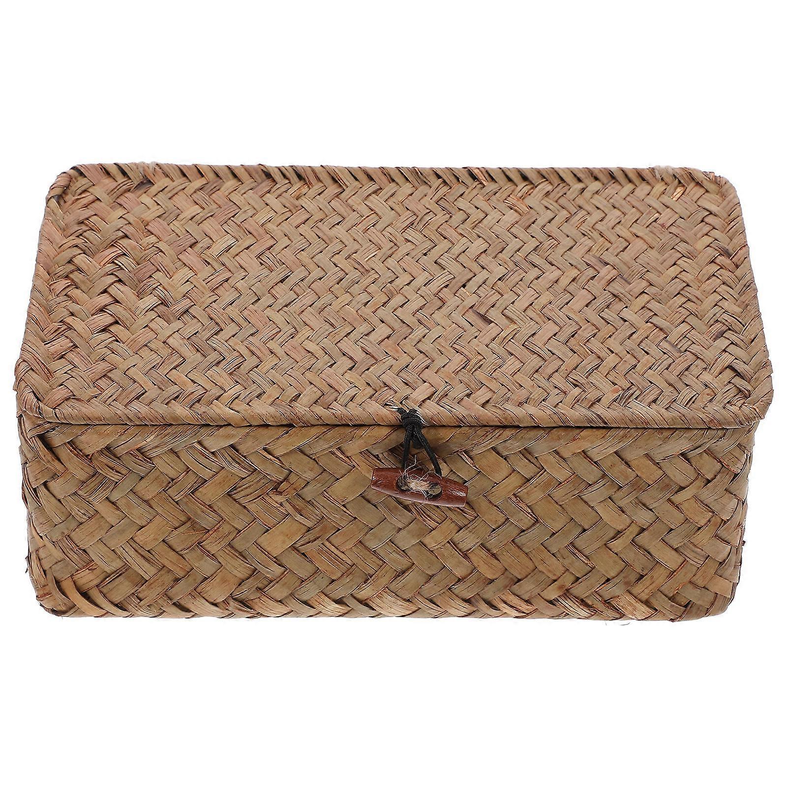 New Seaweed With Button Woven Basket Straw Woven Debris Desktop Storage Box Hand woven Storage Basket Size S