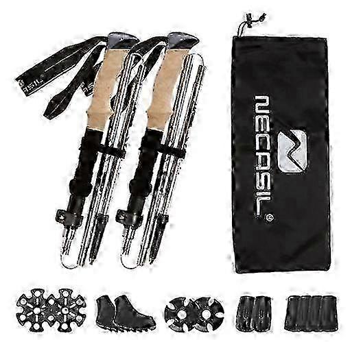 Foldable Hiking Poles, Telescopic Walking Poles, Ultra Light, Aluminium Alloy, Nordic Extendable Trekking Poles with Cork Handle