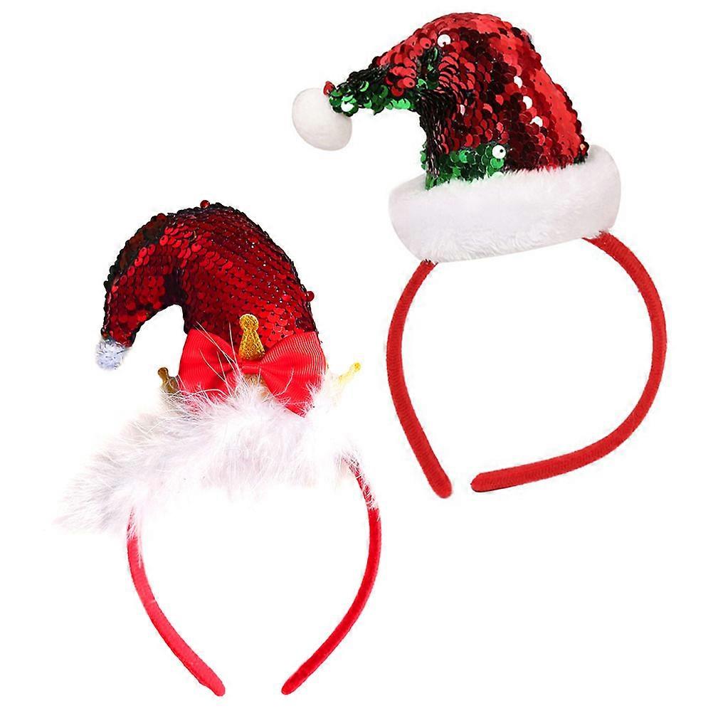 Party Headwear Sequin Hat Headbands For Girls Aged 3-10 Designed For Christmas Photo Taking In Red 2Pcs