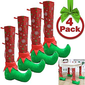 Leg Covers For Christmas Chairs - Elf Stockings And Shoes Design, Holiday Themed Dining Chair And Ta