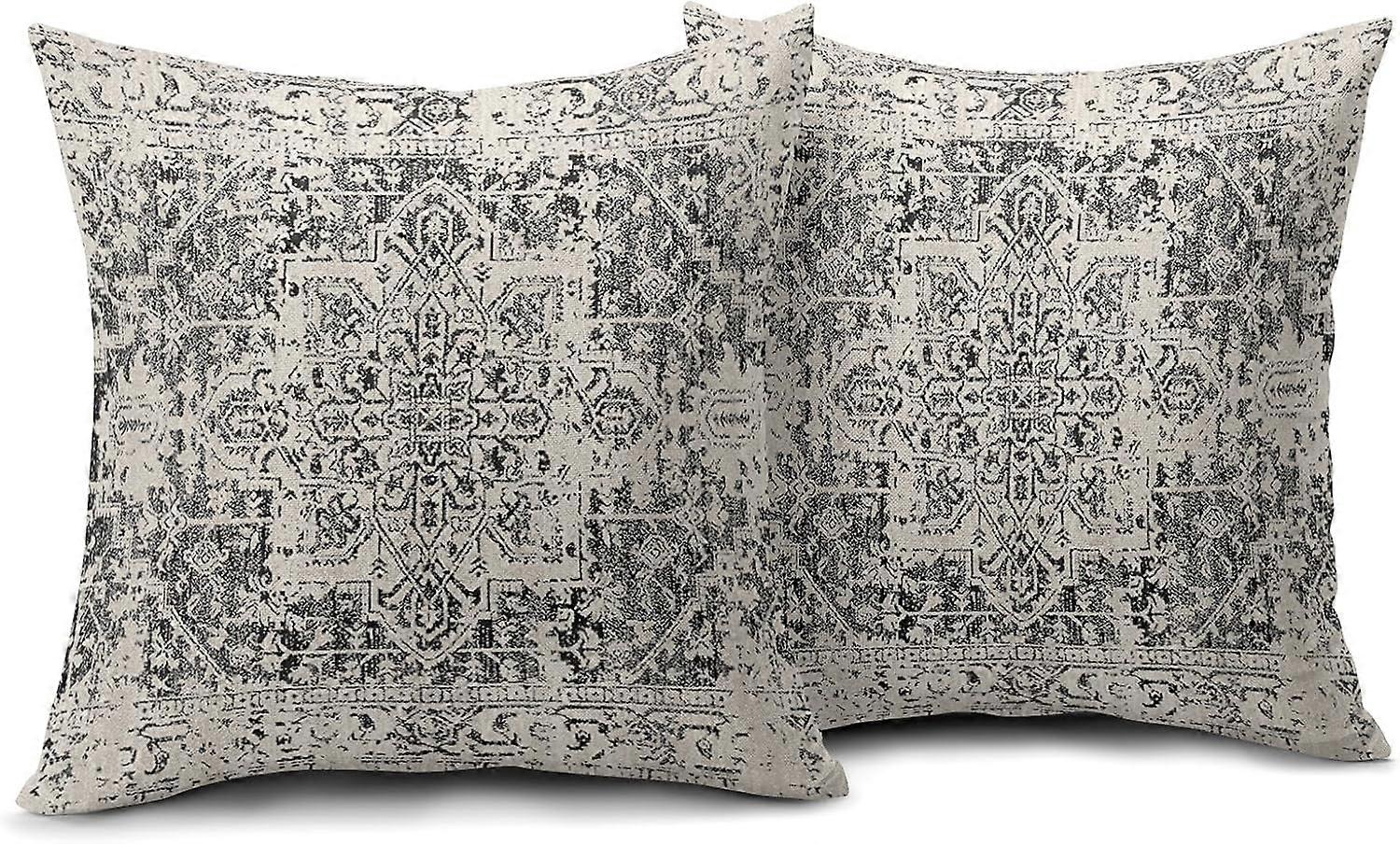 Boho Ethnic Pillow Covers 20x20 Inch Set of 2 Bohemian Carpet Throw Pillows Couch Black White Grey Geometric Decorative Pillow Cases Farmhouse Home De