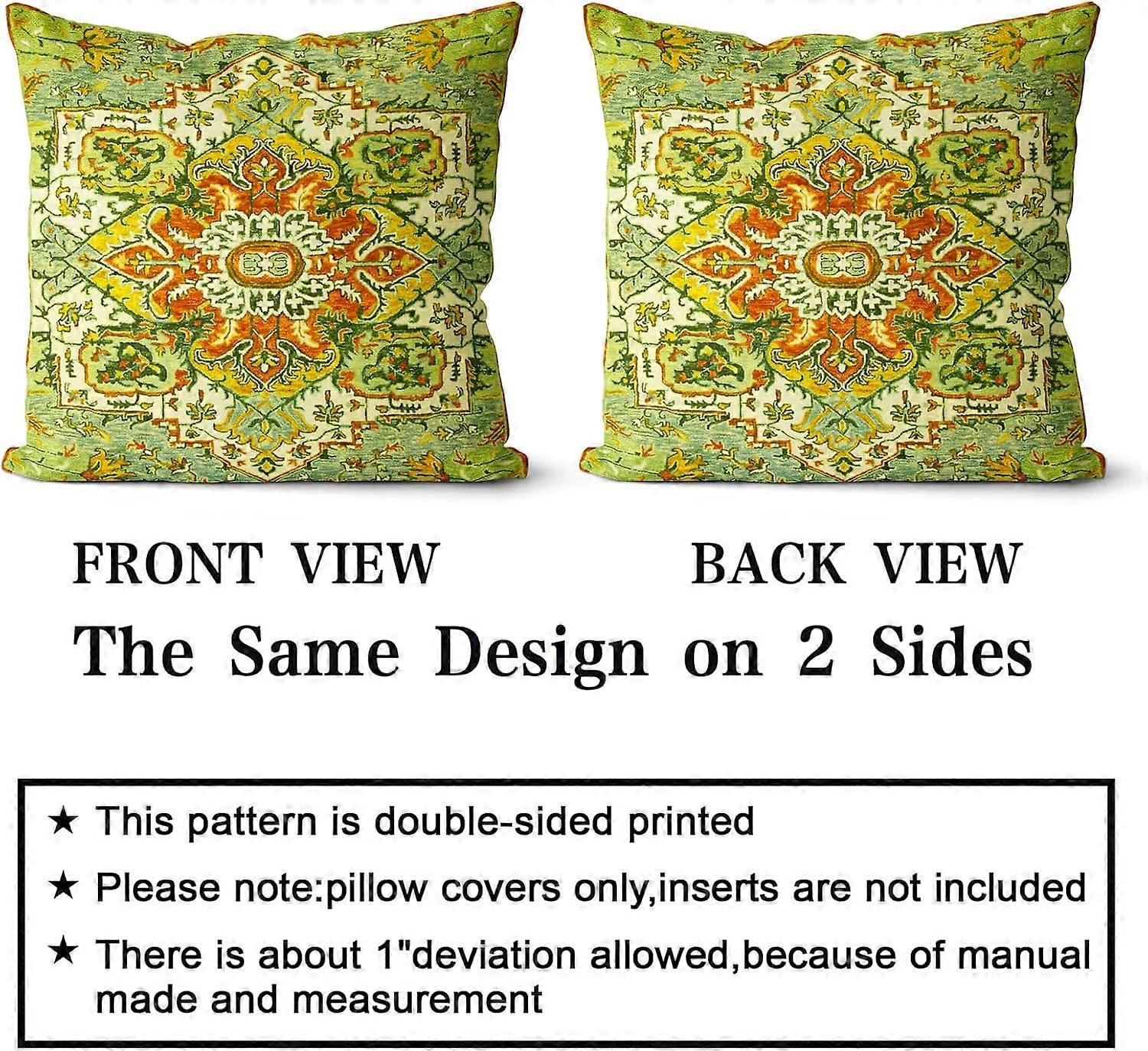 Boho Brilliant green Throw Pillow Covers 18x18 inch Set of 2,Bohemian Carpet Double Sided Pattern Soft Plush Cushion Cover for Couch Sofa Bed Decorati