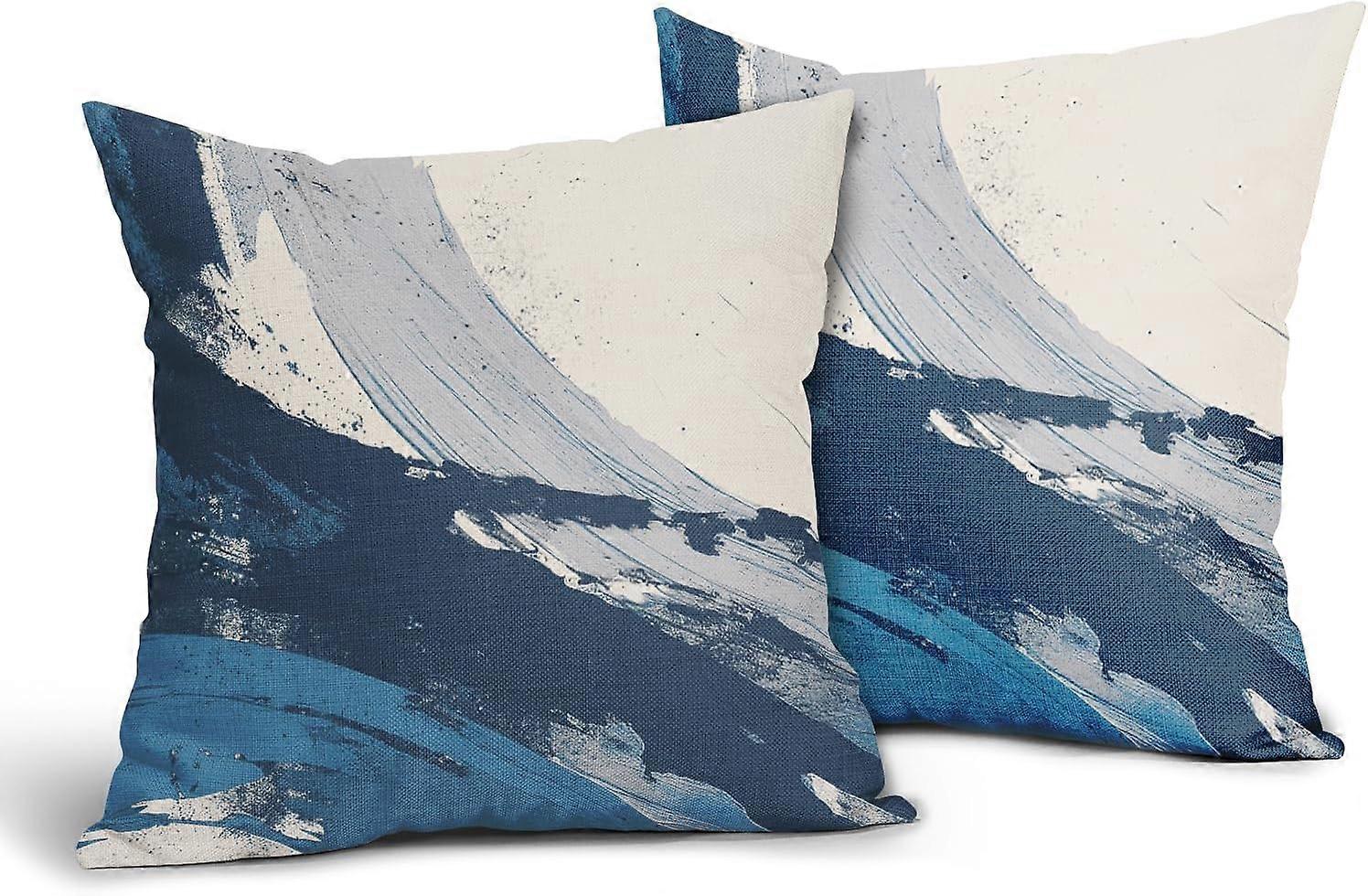 Black and Grey Pillow Covers 20x20 Inch Set of 2 Modern Blue Outdoor Throw Pillow Covers Abstract Art Pillowscase Cotton Linen Square Cushion Covers f