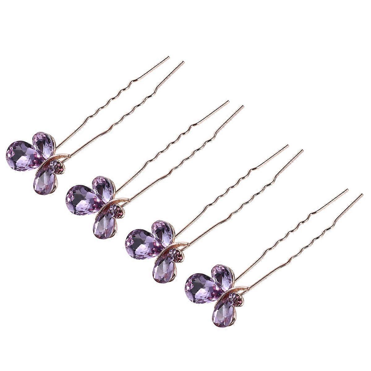 Luxurious Purple Rhinestone Hair Chopsticks for Wedding Party Bridal Hair Sticks with 4 Pieces