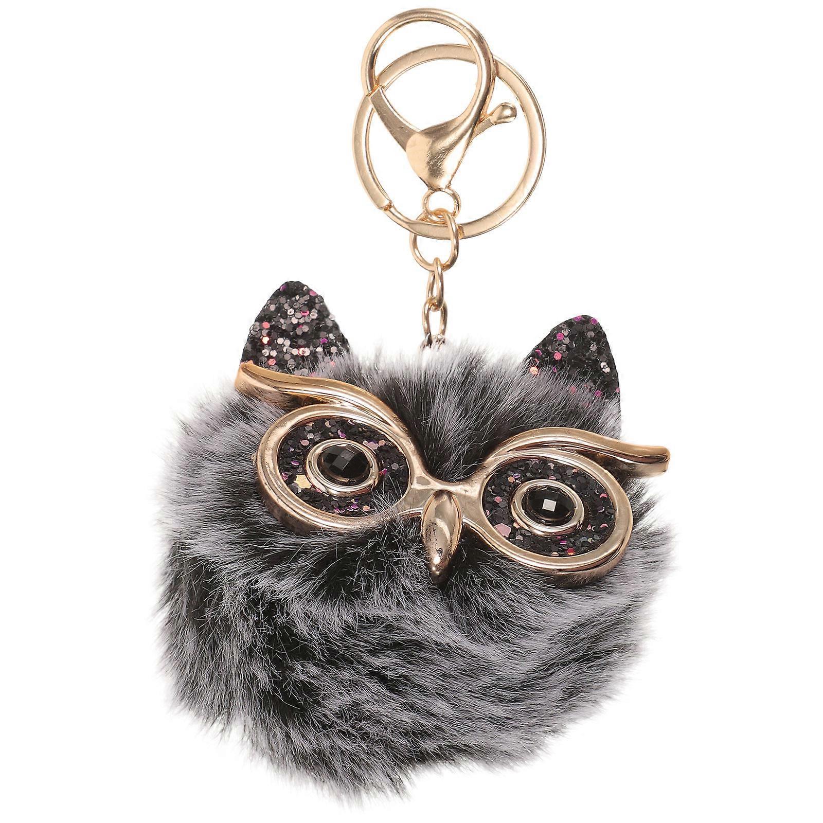 Plush Owl Keychain Cartoon Bag Charm Multifunctional Key Ring Pendant Cute Hanging Decoration for Backpacks Keys Frost Black