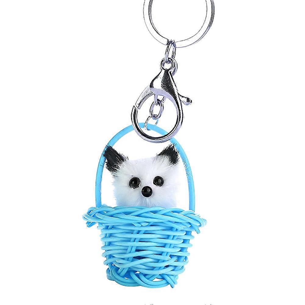 Plush Cat Keychain Blue, Cute Soft Pendant with Metal Ring for Bags, Purse, Car Accessories, Gift for Cat Lovers