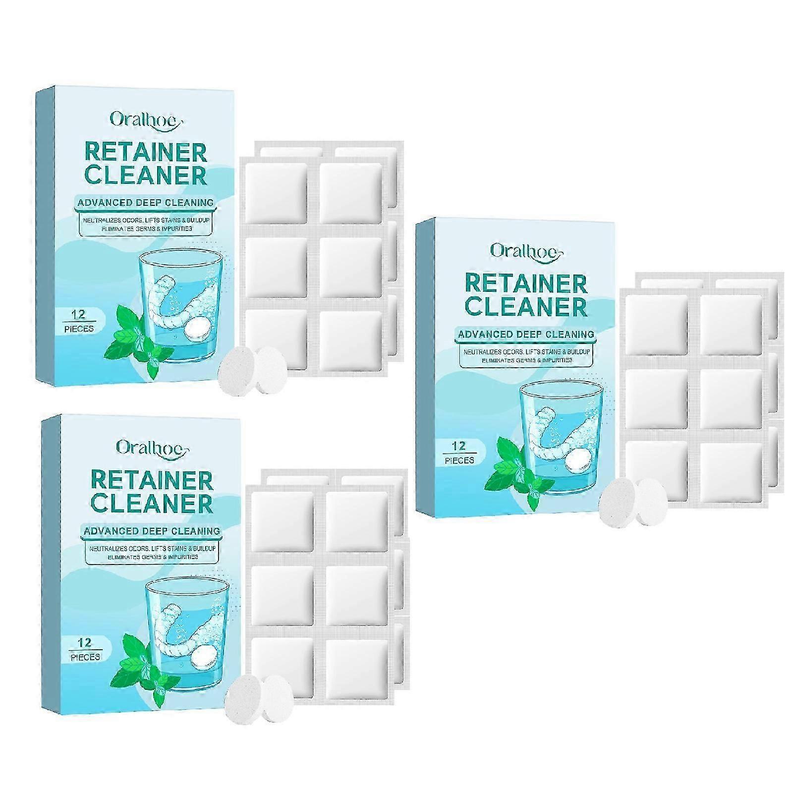 Retainer Cleaner Tablets, 12PCS Denture Cleaning Tablets for Aligner, Mouth & Night Guard, Work with Ultrasonic Retainer Cleaner, Mint Flavor