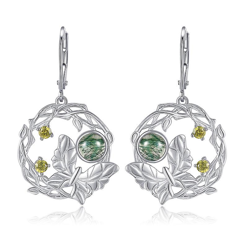 Natural Moss Agate Earrings Tree Branches Dangle Earrings for Women 925 Sterling Silver Leverback Earrings
