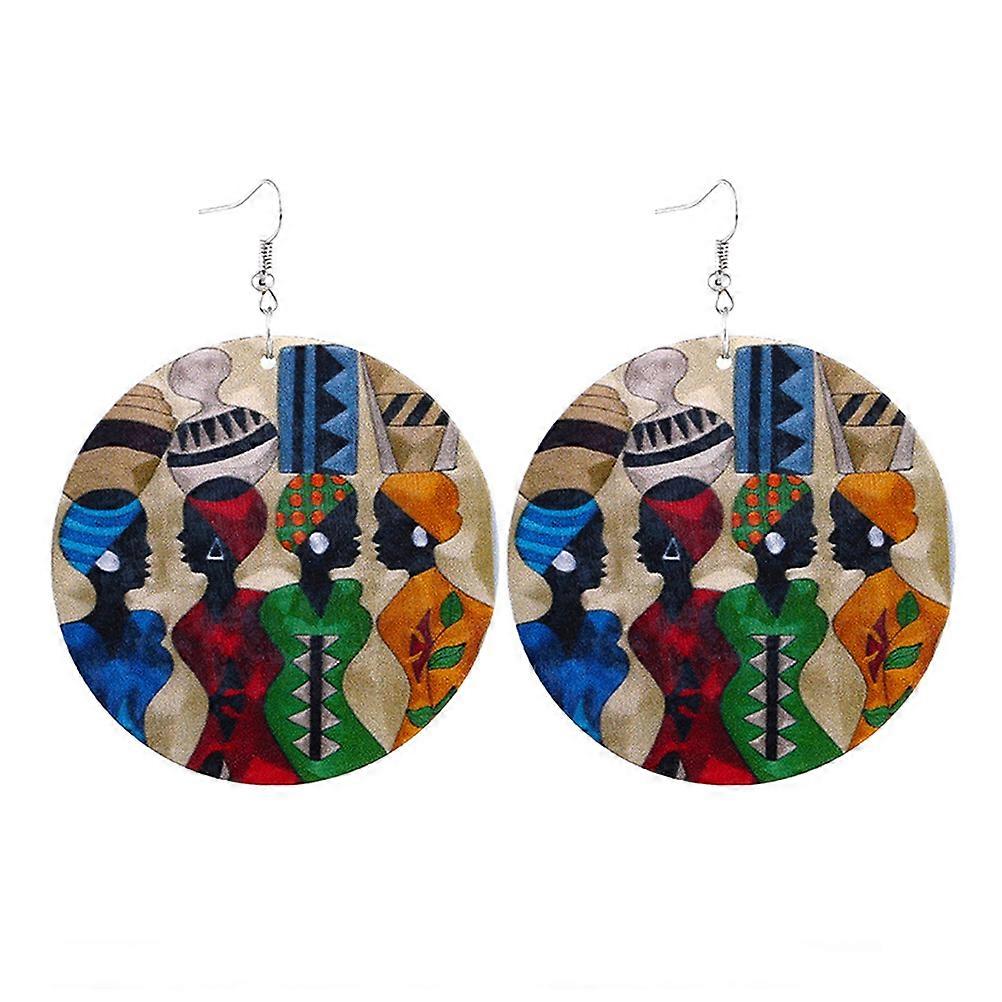 Boho Earrings For Women African Jewelry Wooden Handmade Round Geometric Design Jewelry Girls Summer Beach Photo Taking 6x6cm 1 Pair