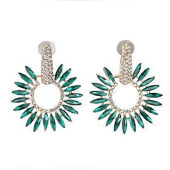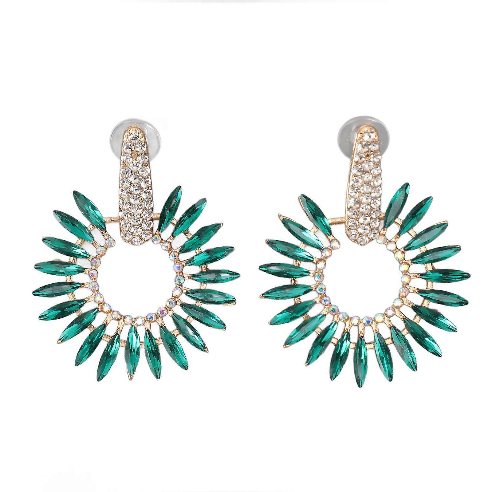 Green Rhinestone Statement Earrings - Large Chandelier Dangle for Women