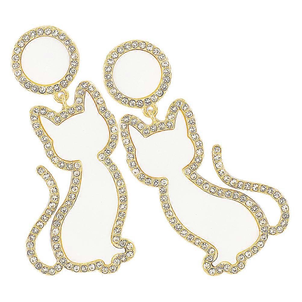 Unique Earrings For Women Cat Shaped Rhinestone Decorative Jewelry For Party 6x2cm Golden 1 Pair