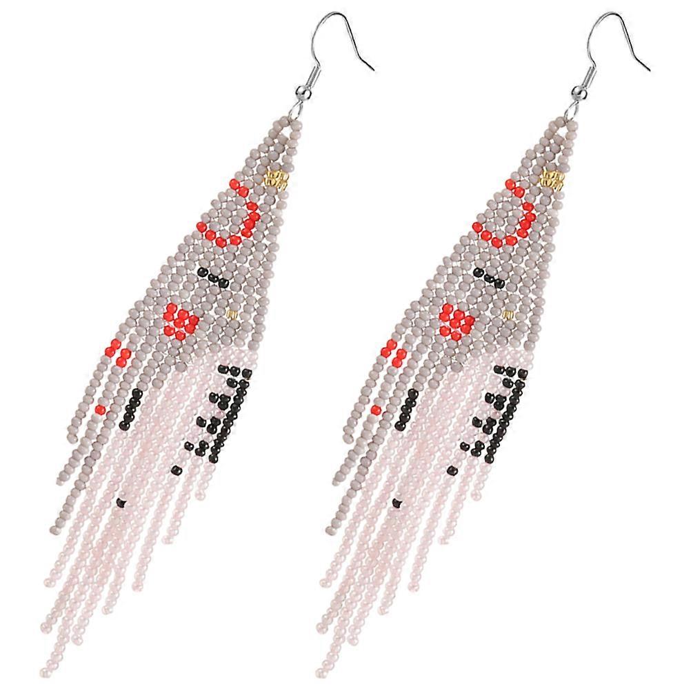 Beige Dangle Tassel Pendant Earrings Handcrafted with Beads and Metal for Decoration 1 Pair