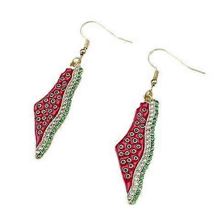 Watermelon Drop Earrings Rhinestone Dangle 1 Pair Palestine Flag Jewelry
