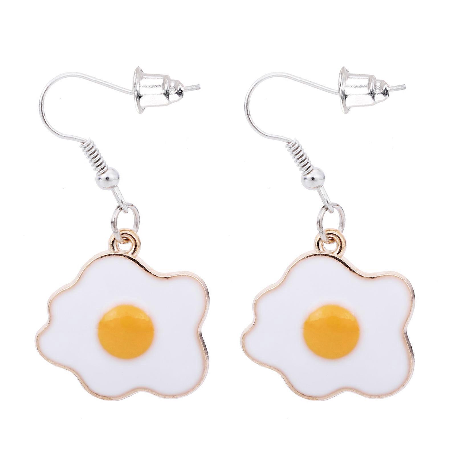 Poached Egg Shaped Dangle Earrings with Food Charm for Decor Multi Color