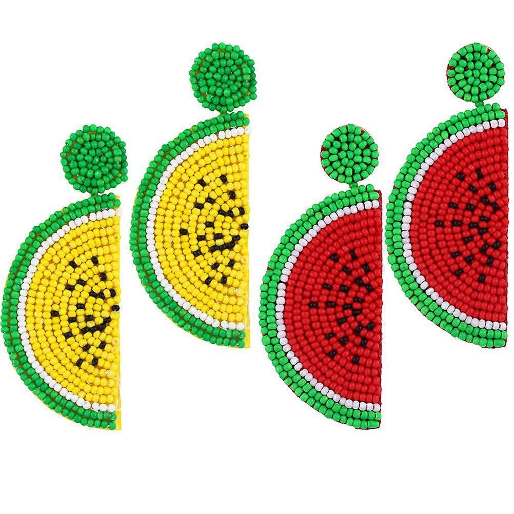 Beaded Dangle Earrings For Women Watermelon Shape Formal Events Jewelry 7.3X2.8CM Comfortable To Wear 2 Pairs