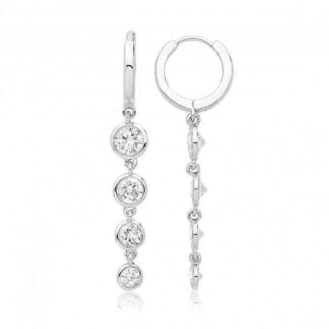 Acotis Silver Drop Hinged Earrings Rhodium Plated Zirconia G51346