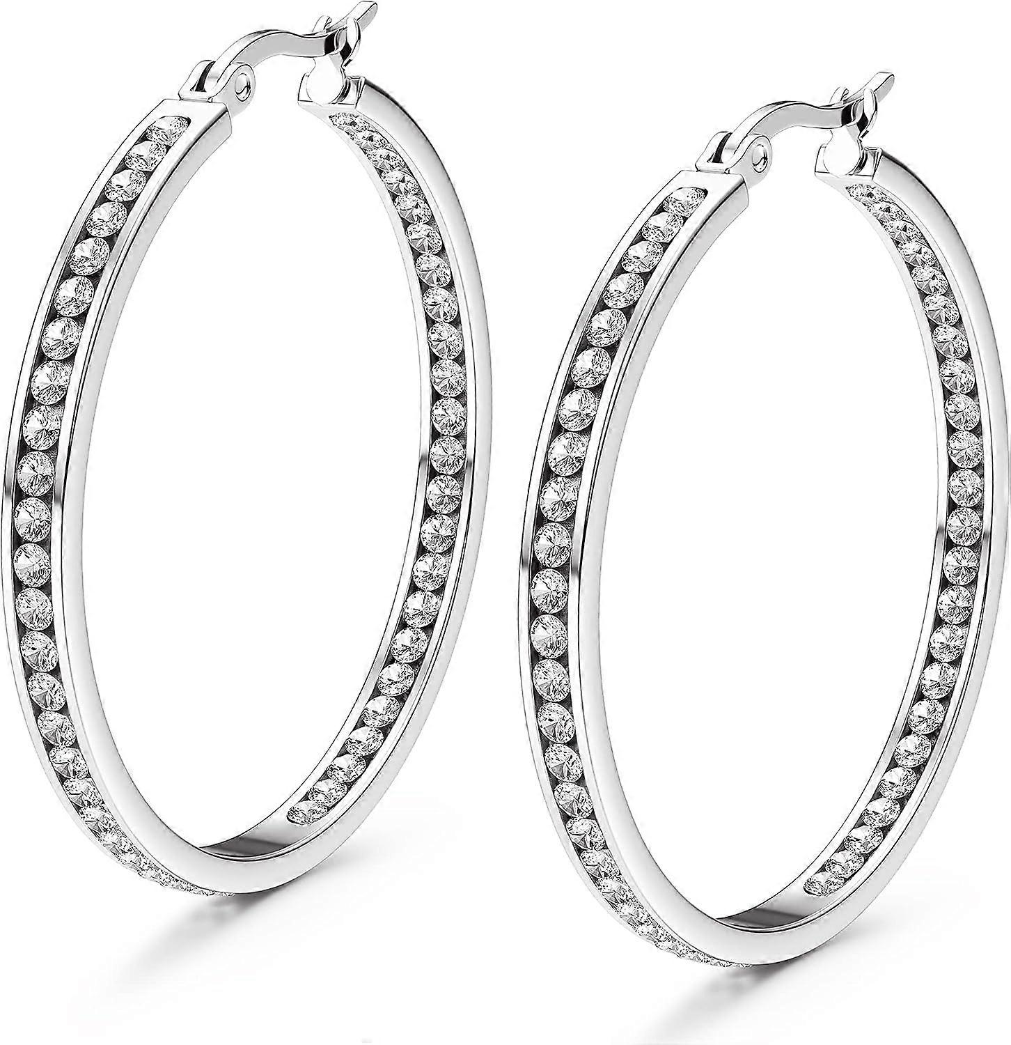Stainless Steel Hoop Earrings for Women Zirconia Huggie Large Hoop Earrings Hanging Hypoallergenic 40 mm 50 mm, No gemstone.