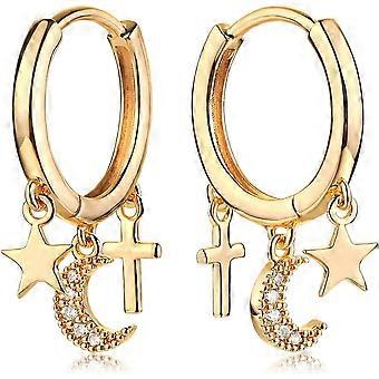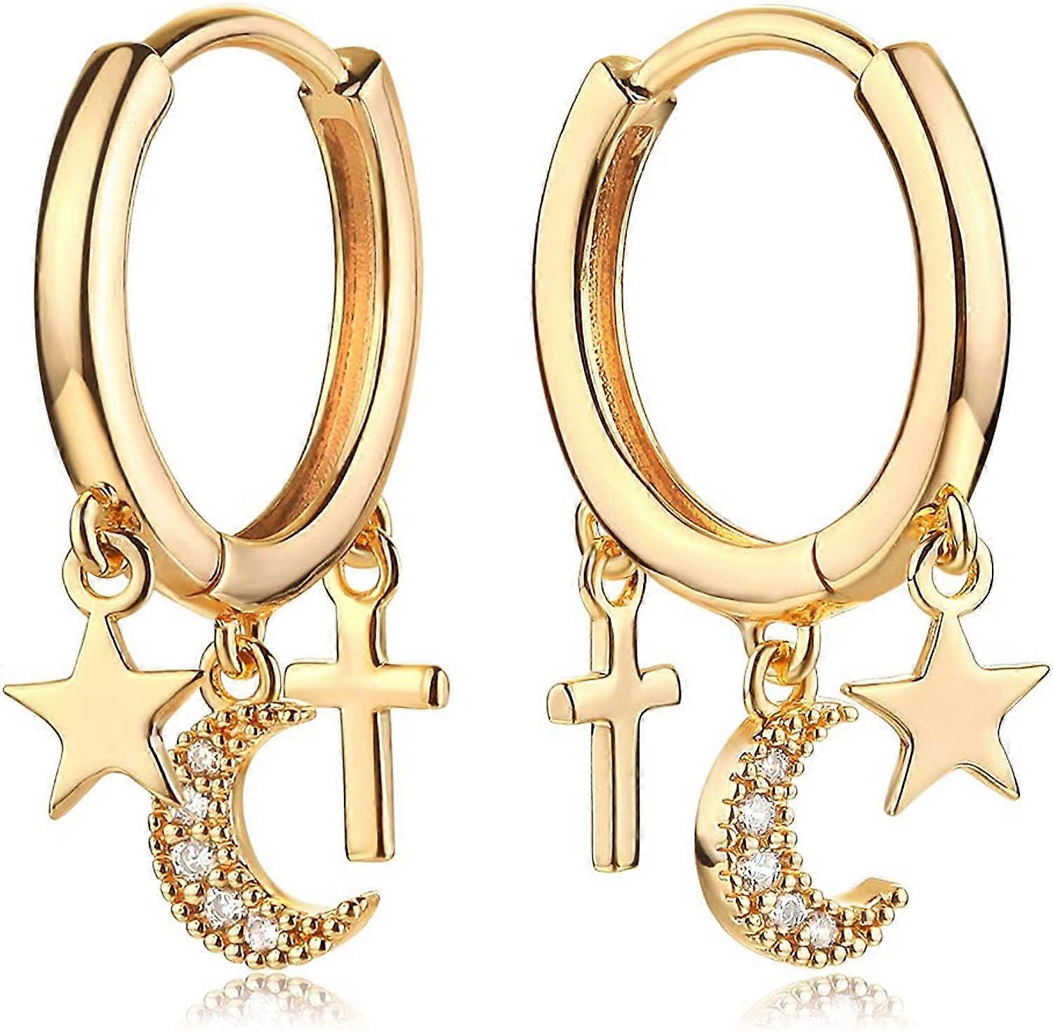 Women Gold Huggie Hoop Earrings Dangle Drop 14K Gold Filled S Boho Beach Simple Delicate