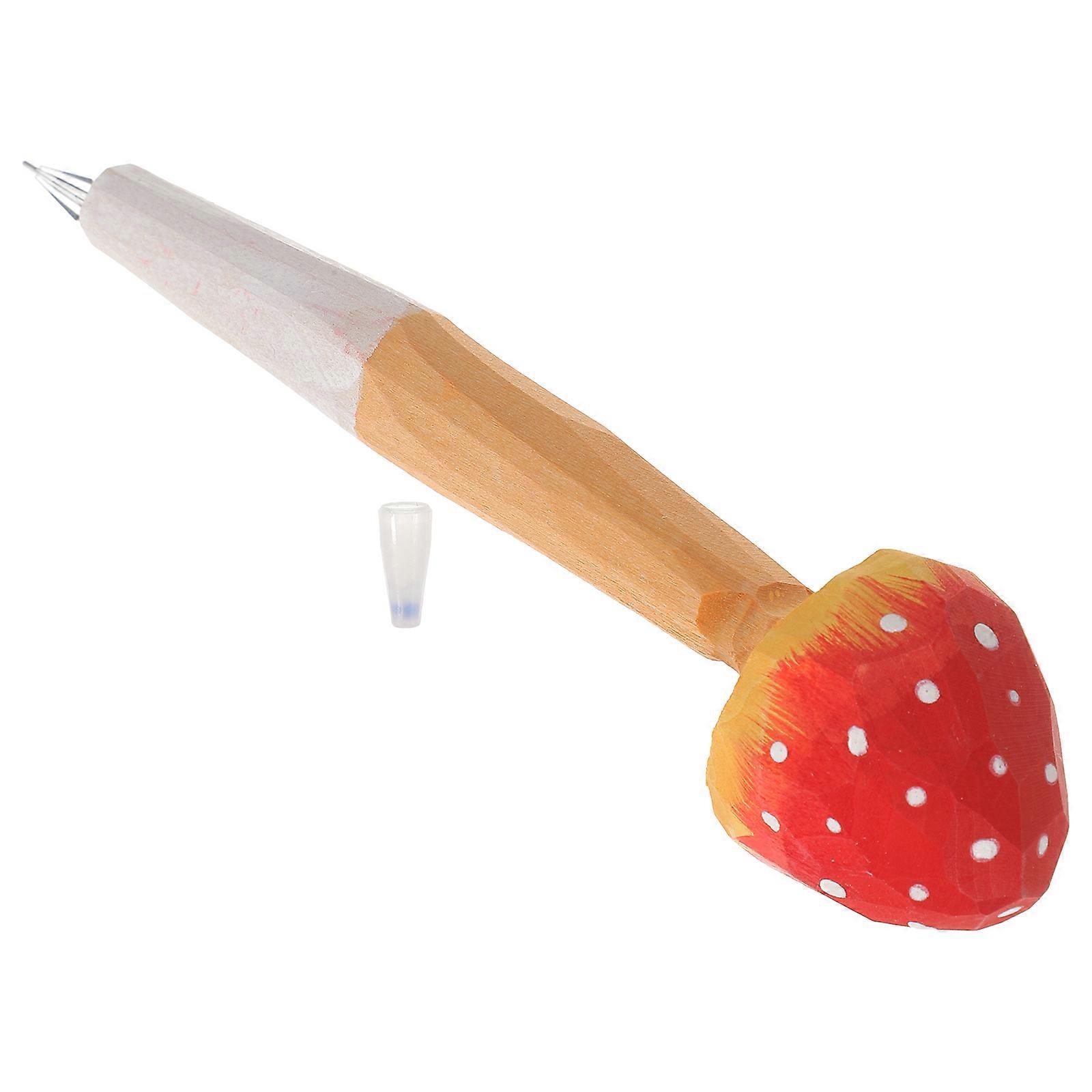 Wooden Mushroom Ballpoint Pens with Creative Design for Kids Students Writing Use in Orange Color