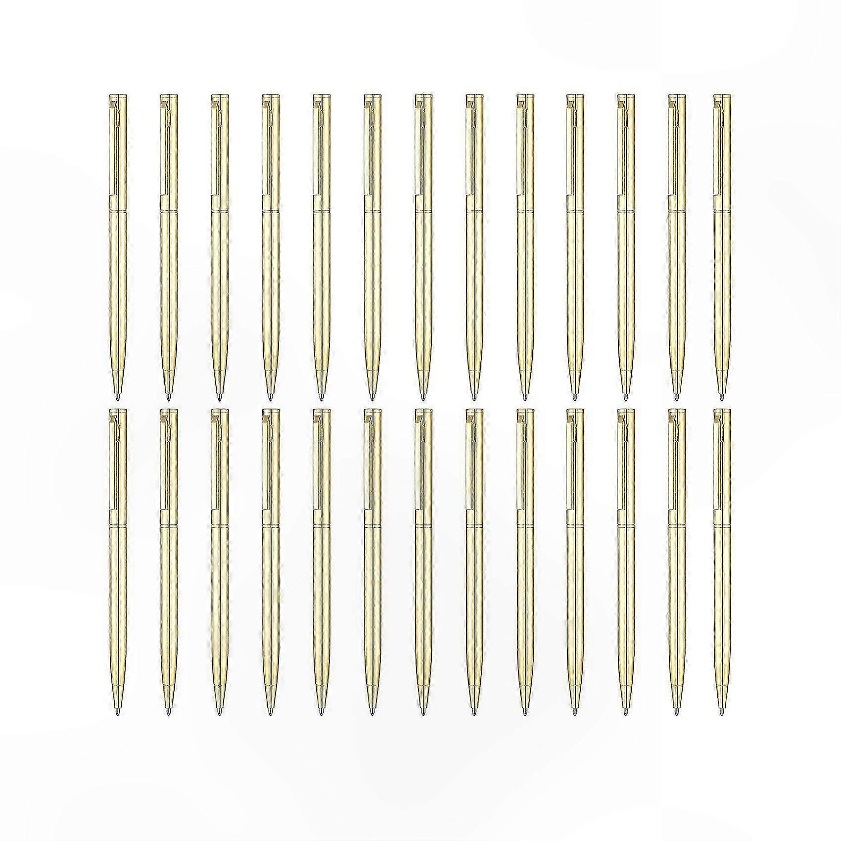 Metallic Slim Ballpoint Pens, 26 Pack, Medium Point Black Ink, Retractable for School and Office Use (Gold Tone)