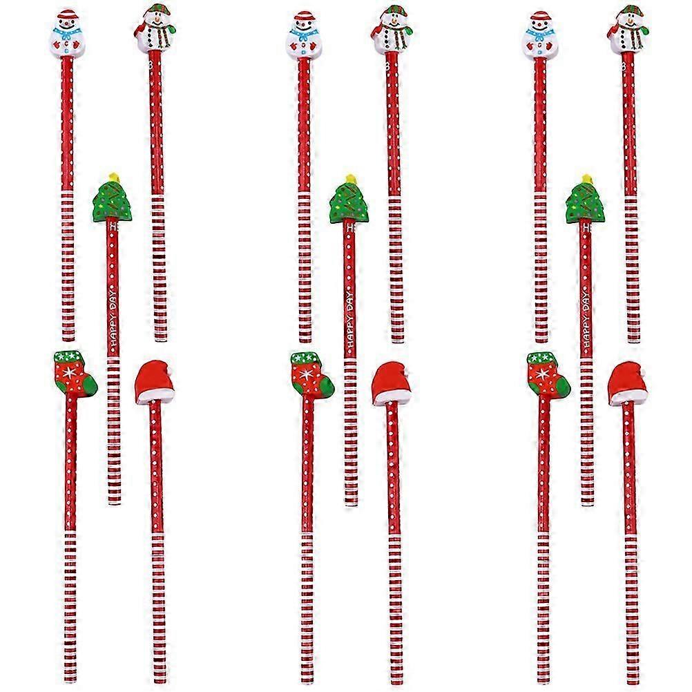 Kawaii Holiday Pencils for Students, Ergonomic Design, Natural Wood, 15-Pack