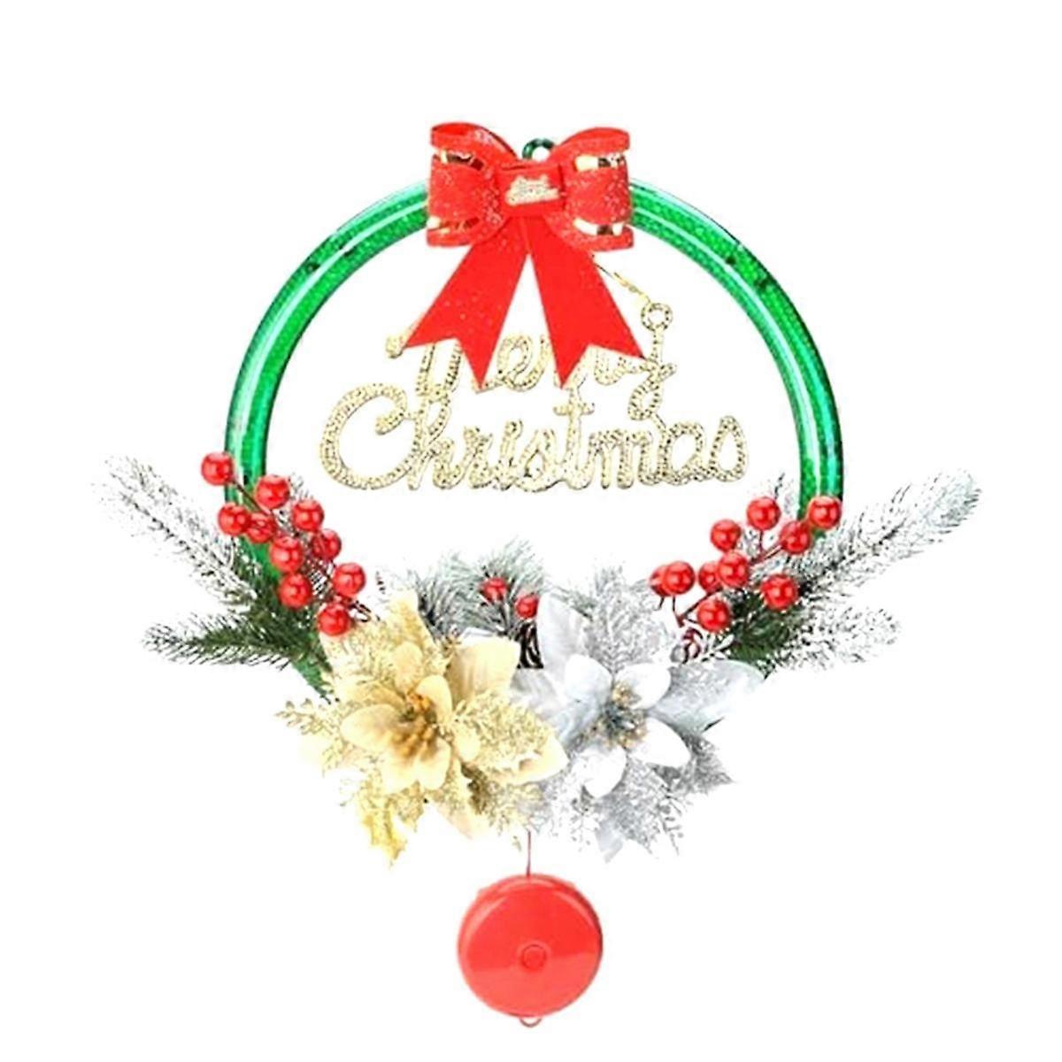 Christmas Wreaths for Front Door -Christmas Wreath with Lights, Flowers Picks, Green Pretty Garland