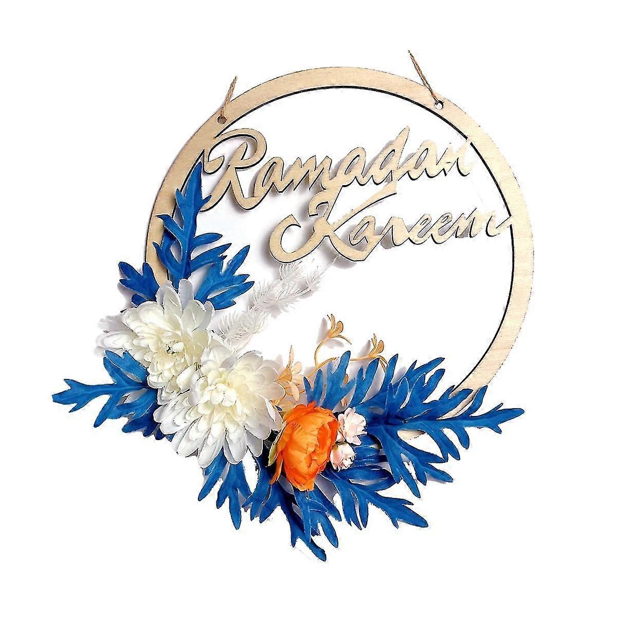 Eid Ramadan Kareem Wreaths For Front Door, 10 Inches Artificial Small White Flowers Spring Hanging