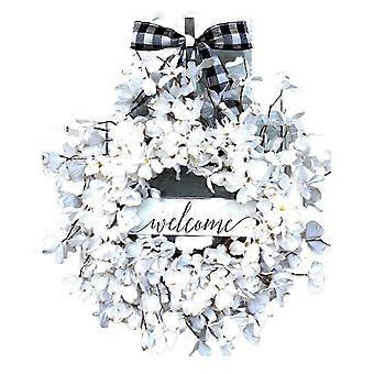 أكاليل من قرانيا للباب الأمامي، إكليل من الزهور باب الباب الأمامي الربيعي، 18 بوصة أبيض إكليل باب قرانيا، أكاليل الشتاء (أبيض)