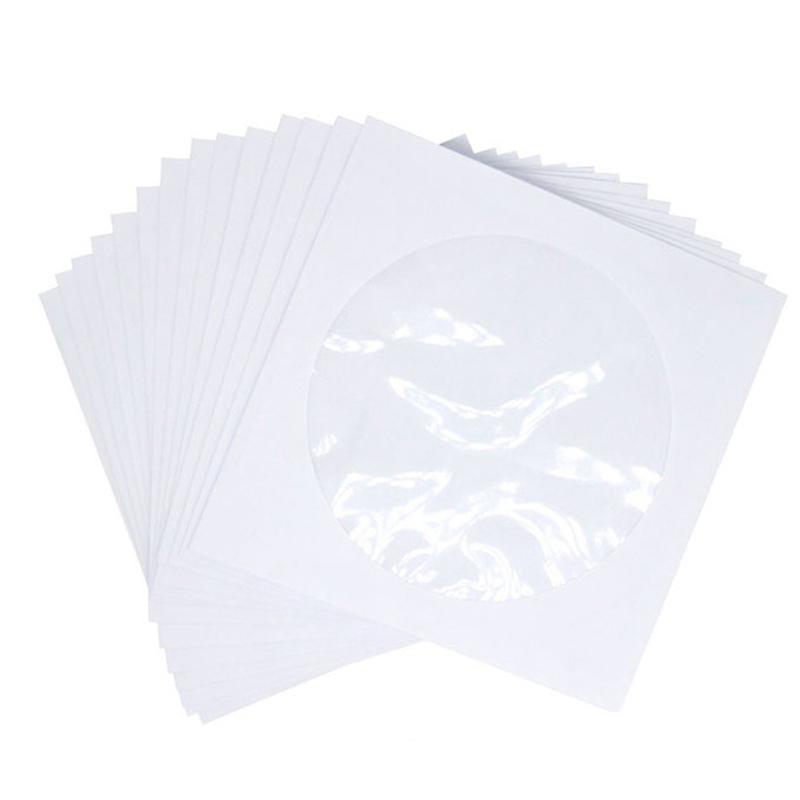CD DVD Sleeves, DVD CD Media Paper Envelop Sleeves Holder with Clear Window Flap White, Pack of 100