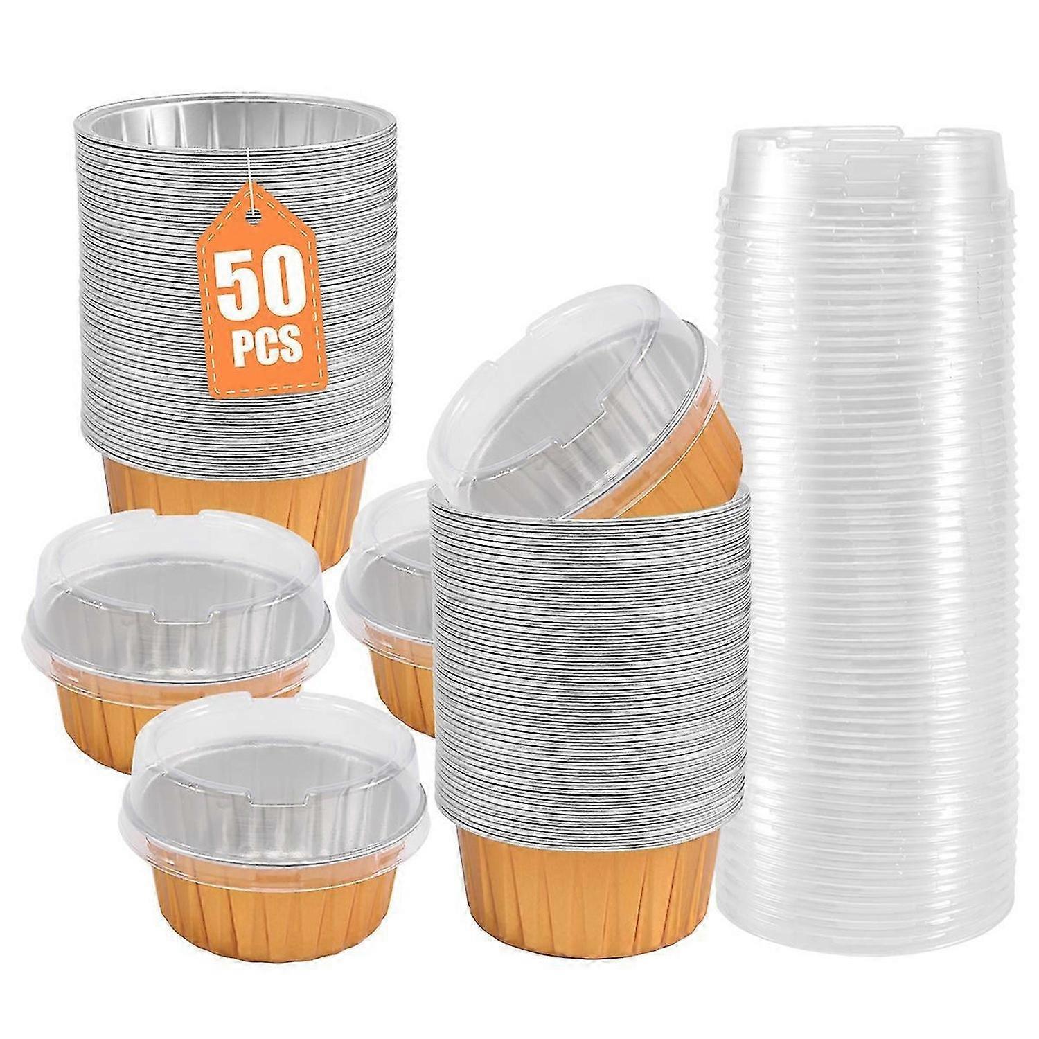 Dessert Cups with Lids, Gold Aluminum Foil Baking Cups Holders, Cupcake Bake Utility Ramekin Clear P