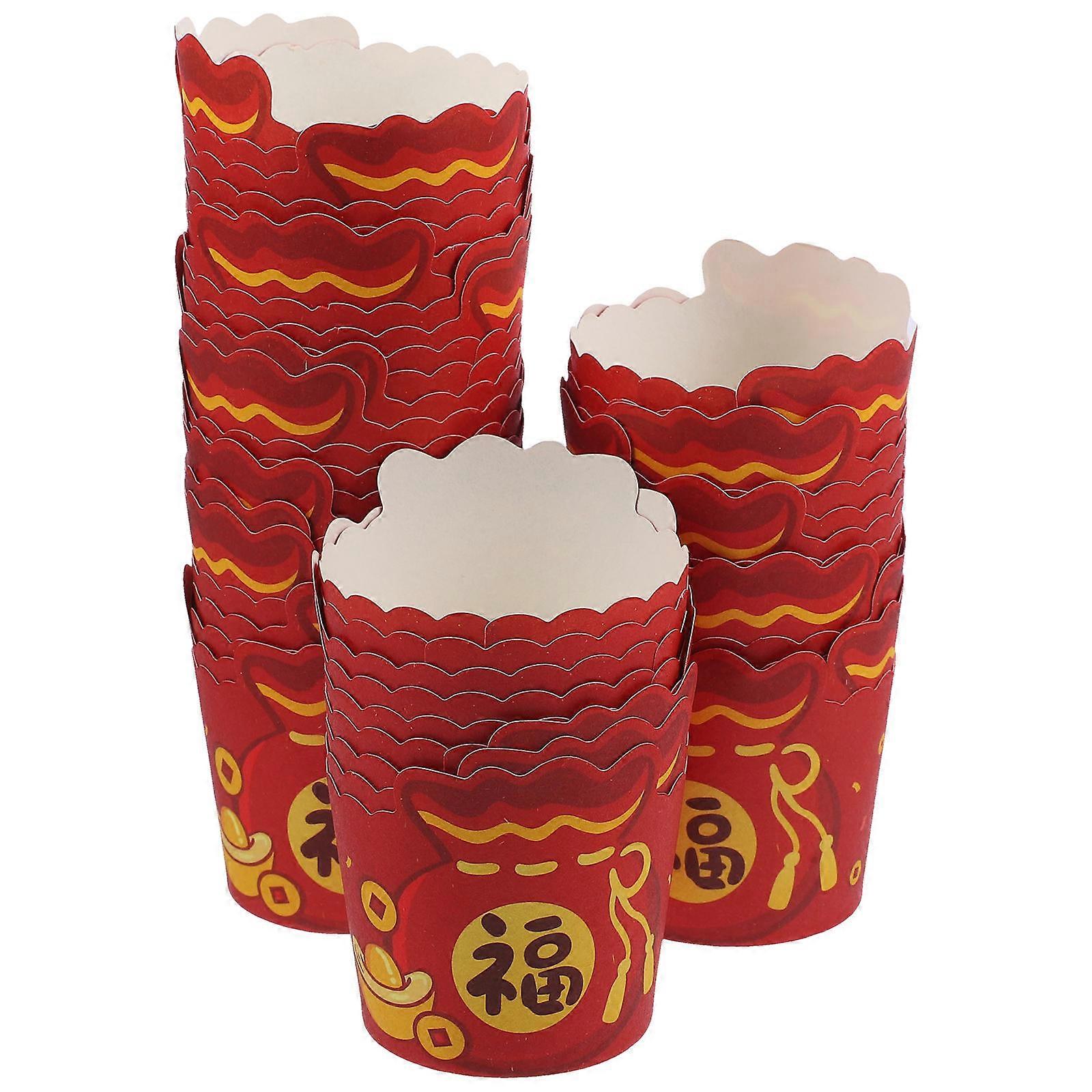 Oil-Proof Cake Baking Cups 50Pcs Spring Festival Cupcake Liners Festive Design Lucky Bag Shaped For Celebrations