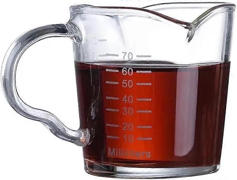 Espresso Shot Glass Cups 3-Ounce Triple Pitcher Barista Double Spouts with Pouring Handle (Clear)(1pcs)