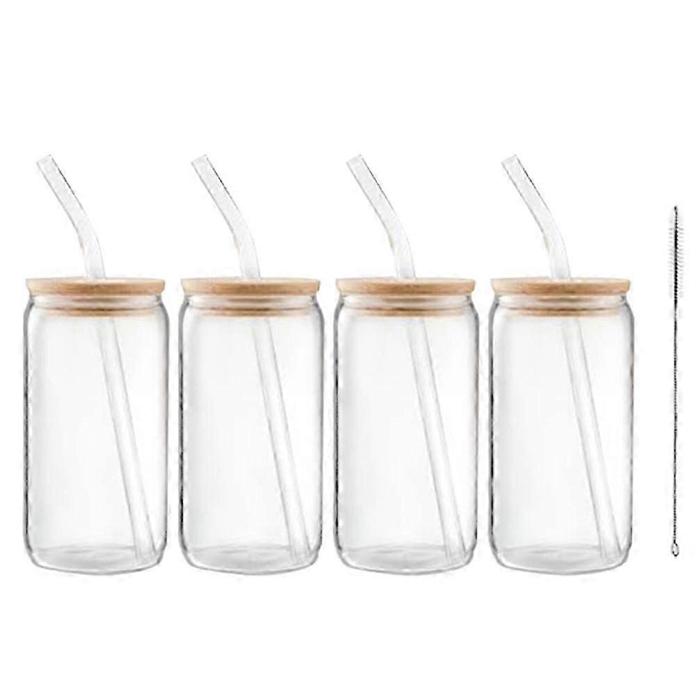 Glass Cups 16oz,glass Cups With Lids And Straws 4pcs Coffee Cups,drinking Glasses