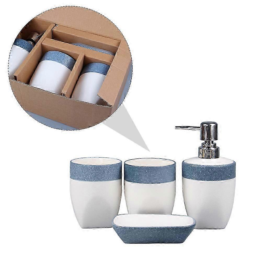 Bathroom Soap Dispenser Tray Cups Blue Hotel Bathroom Organizing Snow Glazed Ceramic 16.00x8.00x8.00cm 1Set