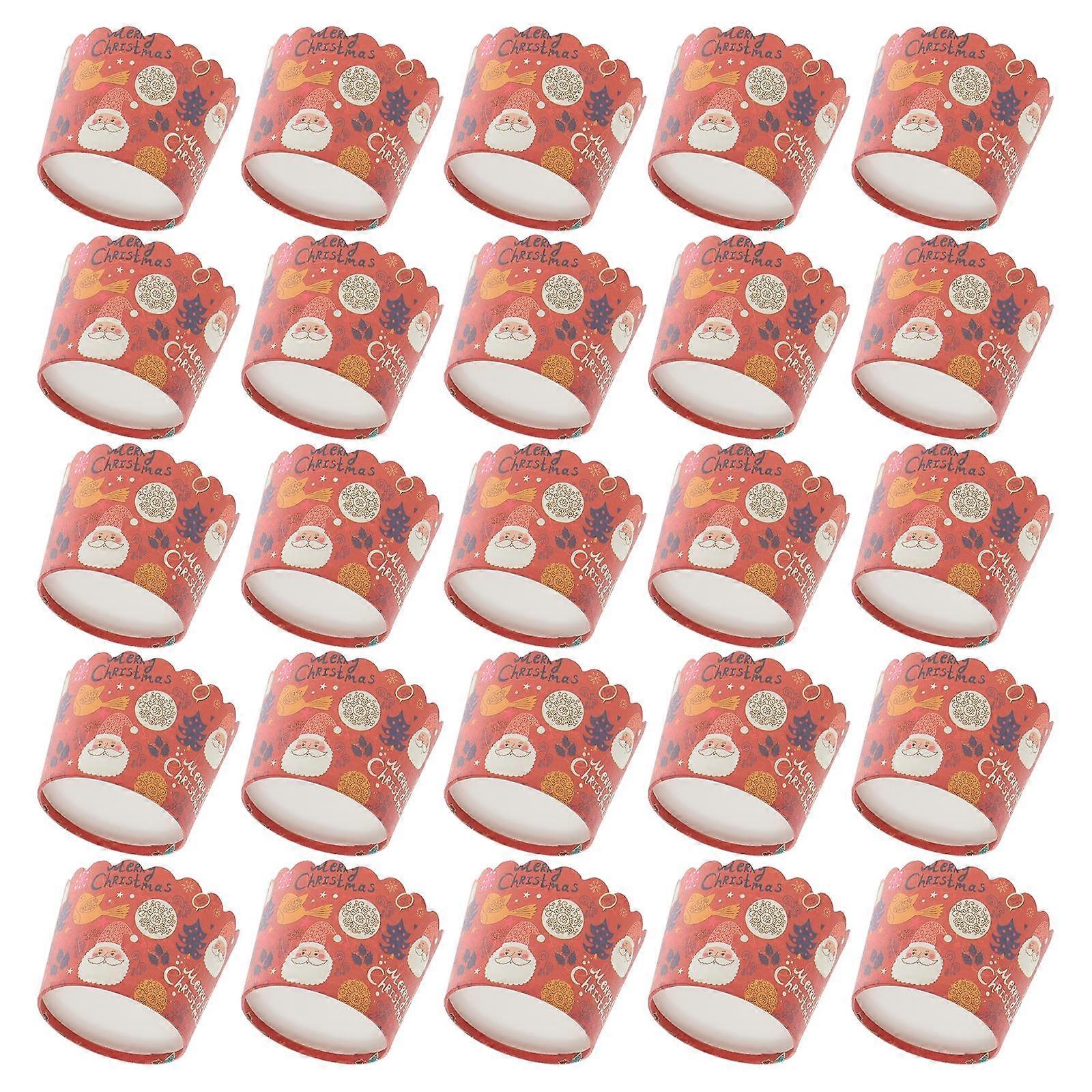 Cake Paper Cups Heat Resistant Baking Packaging for Wedding Birthday Party Red Background Santa Claus 50Pcs A Pack Random Style